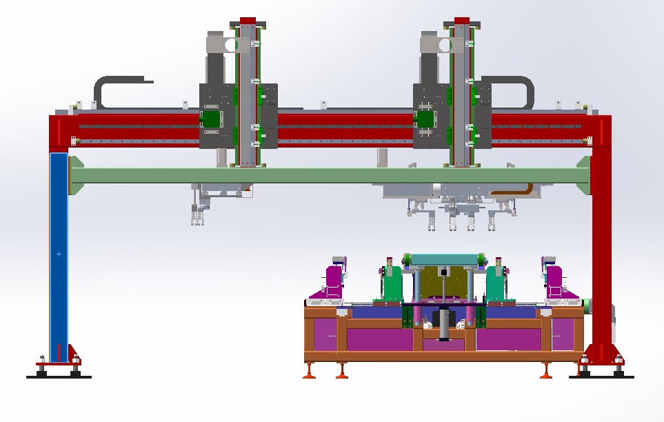• 全自動裝框一體機是角碼柳接式鋁合金矩形組裝的專用設備。由氣缸、直線導軌及鋼結構組裝而成,可以實現組件層壓完畢以后,組件的鋁合金邊框擠壓定位。